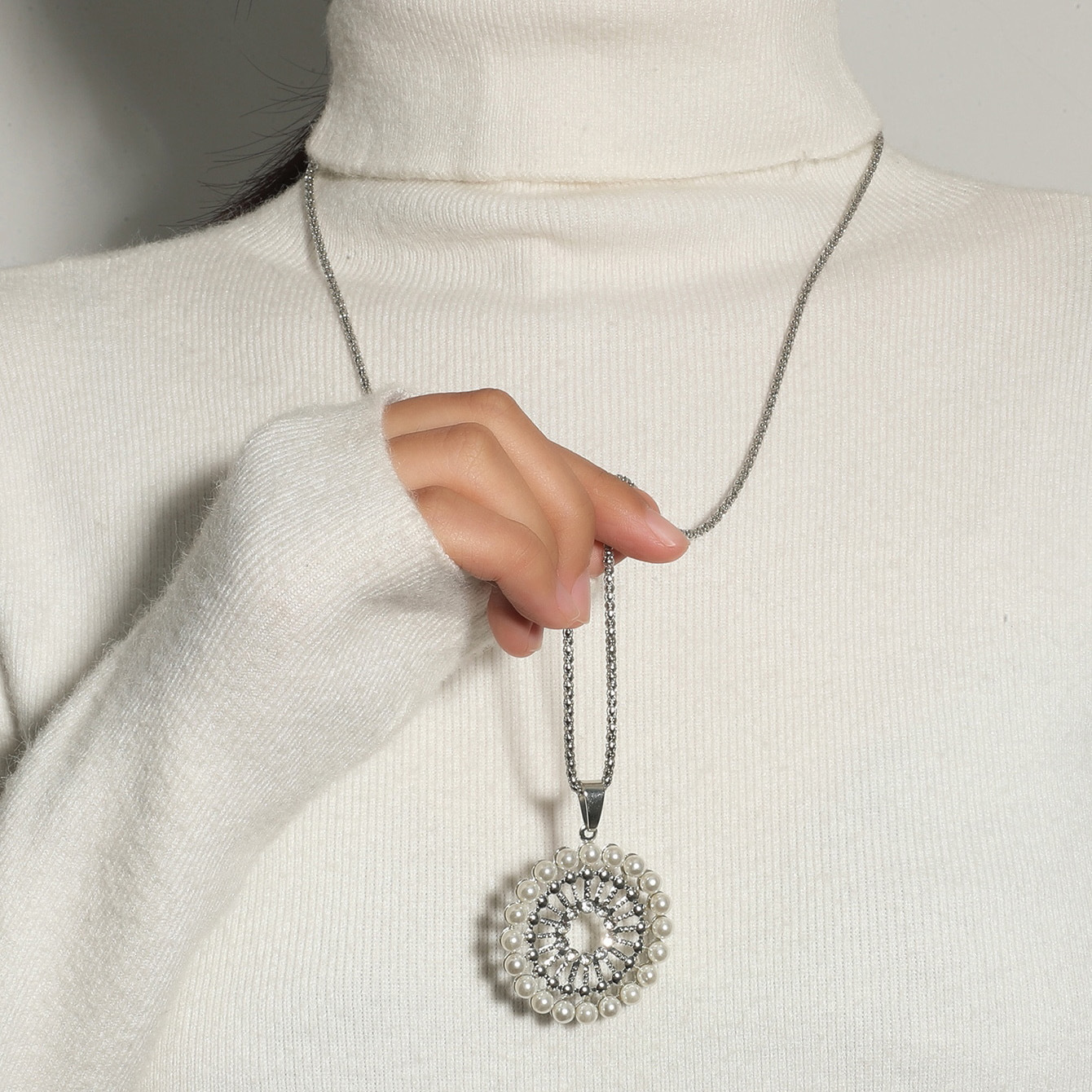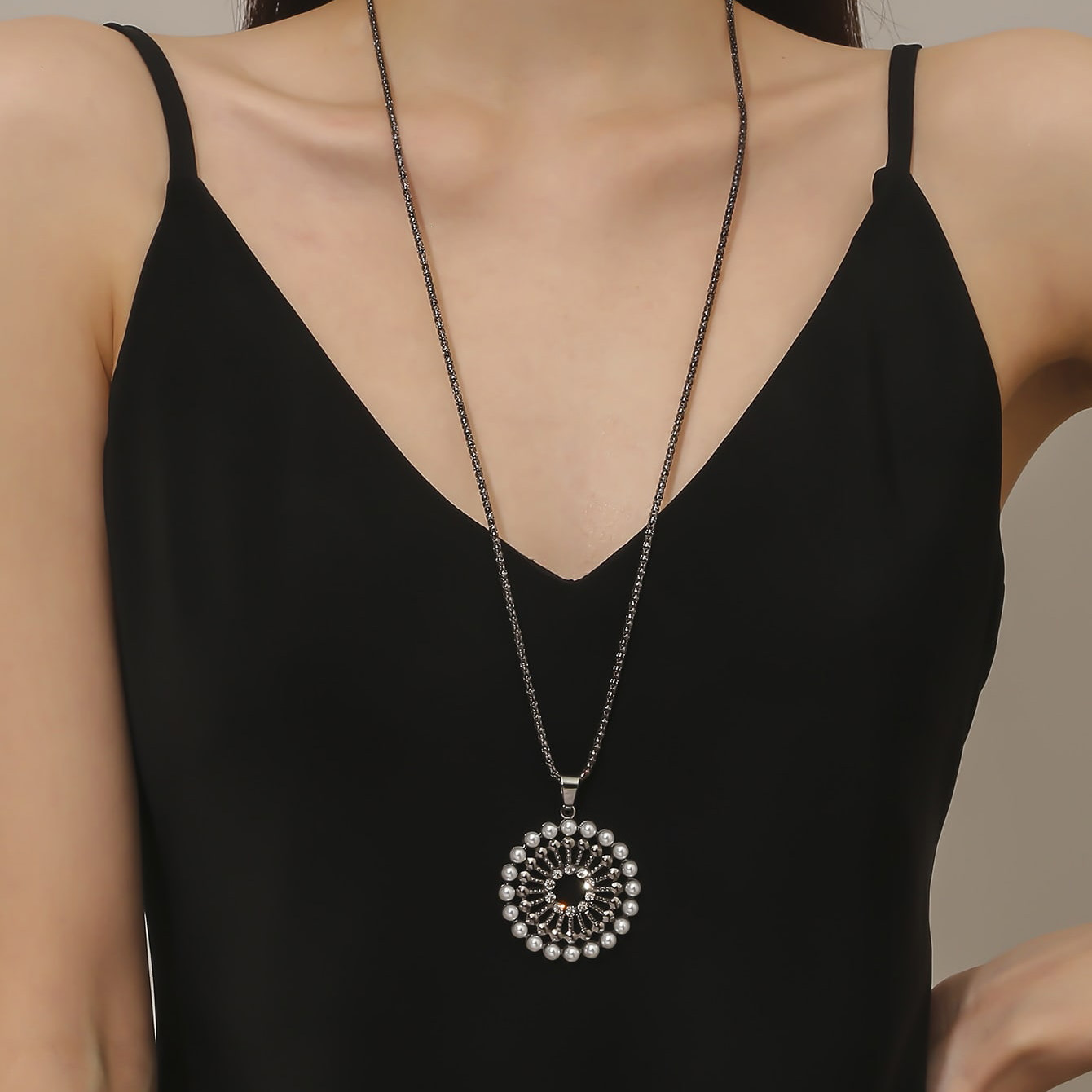 2023 New European and American Cross-border Jewelry Autumn and Winter Fashion Rhinestone Design Sense Niche Vintage Sweater Long Necklace
