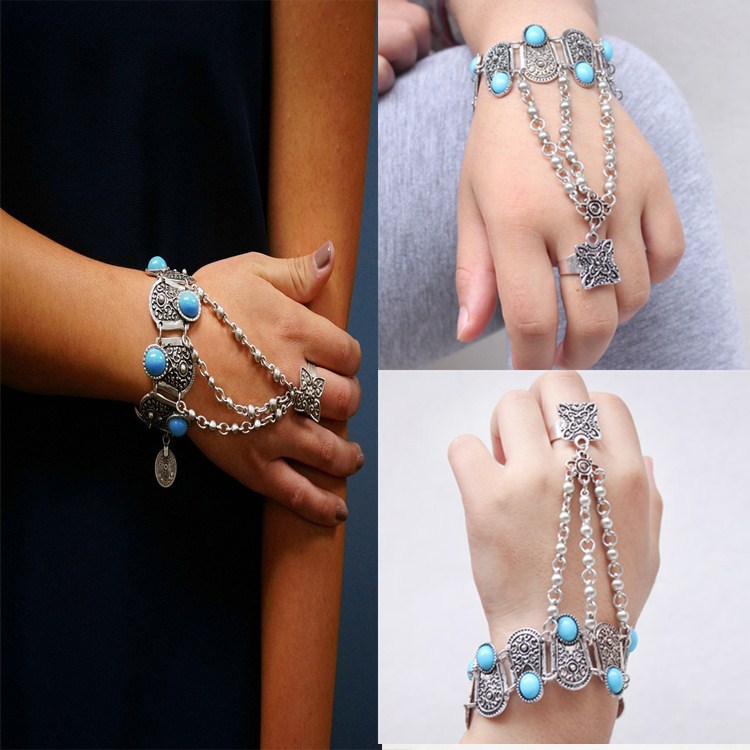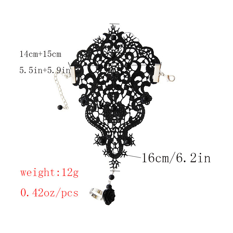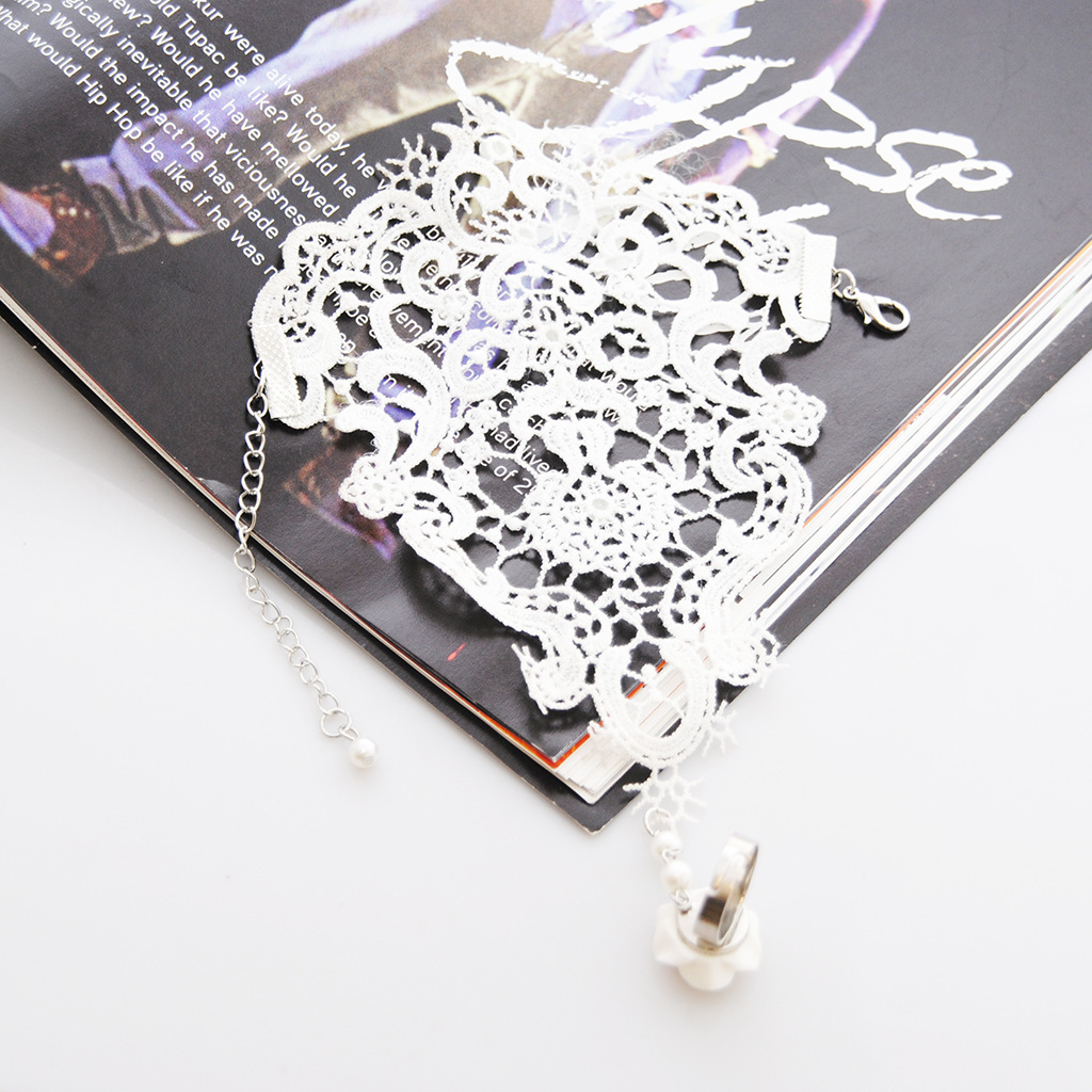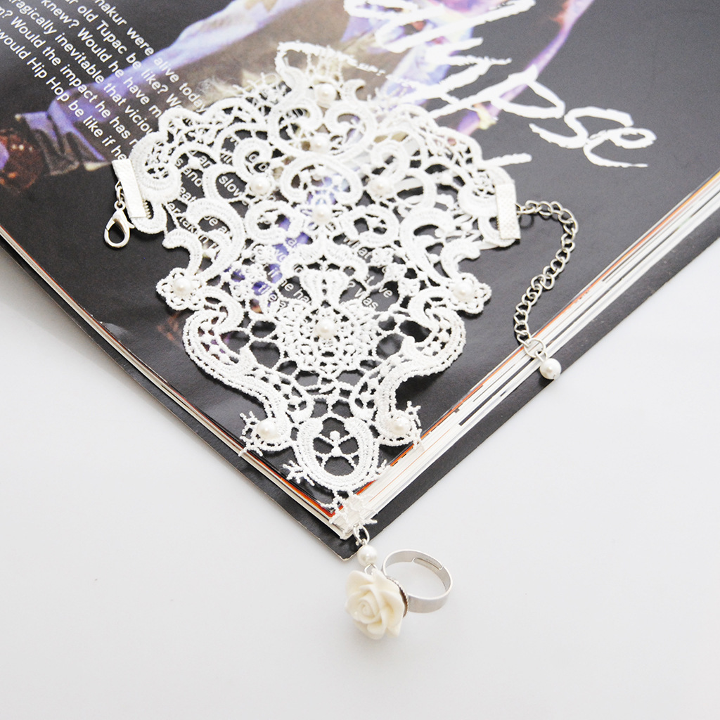 2024 bridal wedding accessories, white lace bracelet with ring, integrated chain, foreign trade export hand accessories wholesale