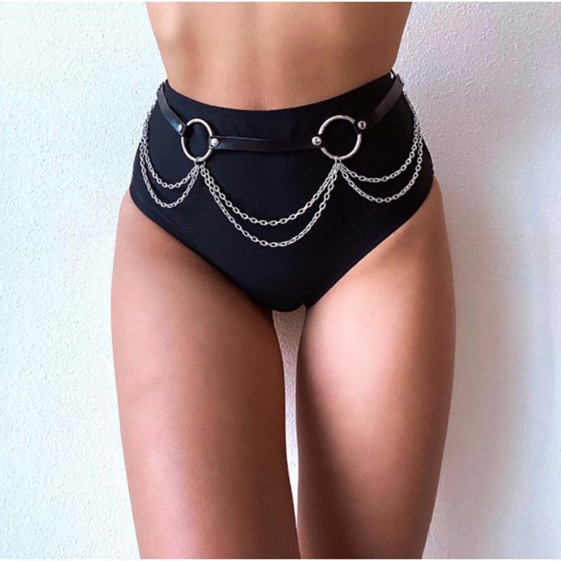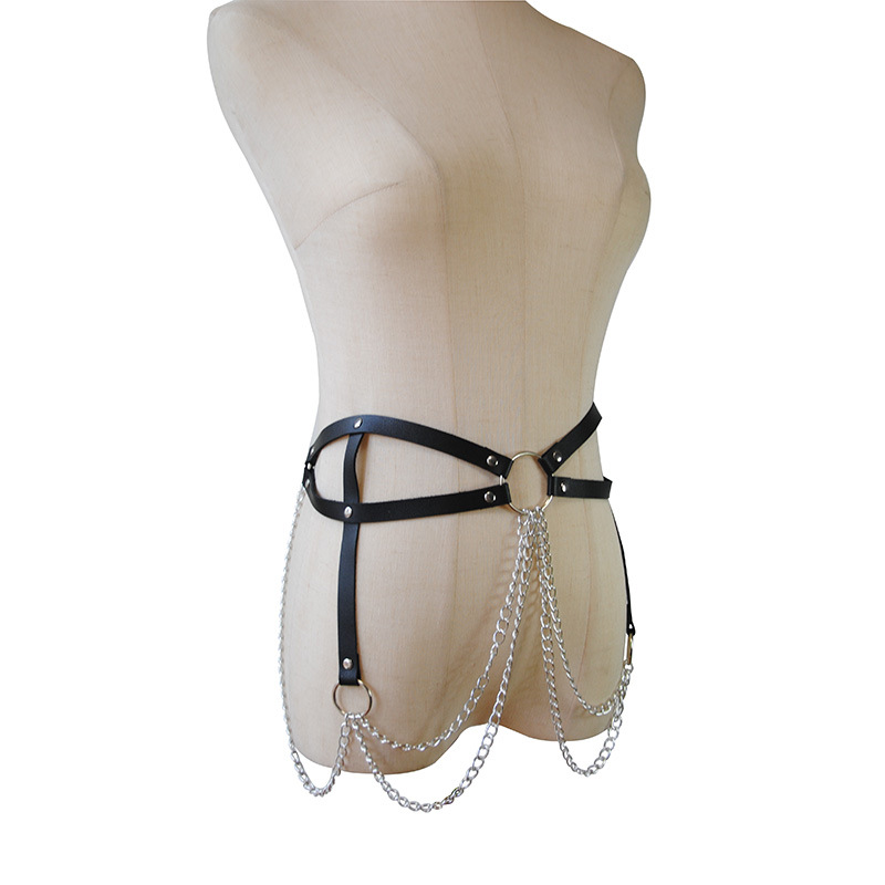2024 Cross-border Europe and the United States New Double Leather Waist Chain Bondage Belt Sexy Tassel Waist Chain Metal Body Chain Hot
