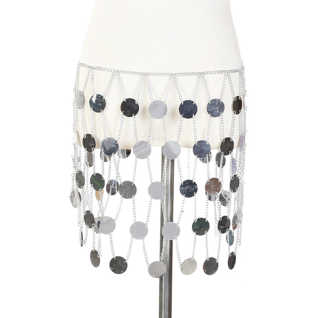 2024 cross-border explosive sequins waist chain nightclub handmade exaggerated fishnet sequins sexy skirt waist chain NE