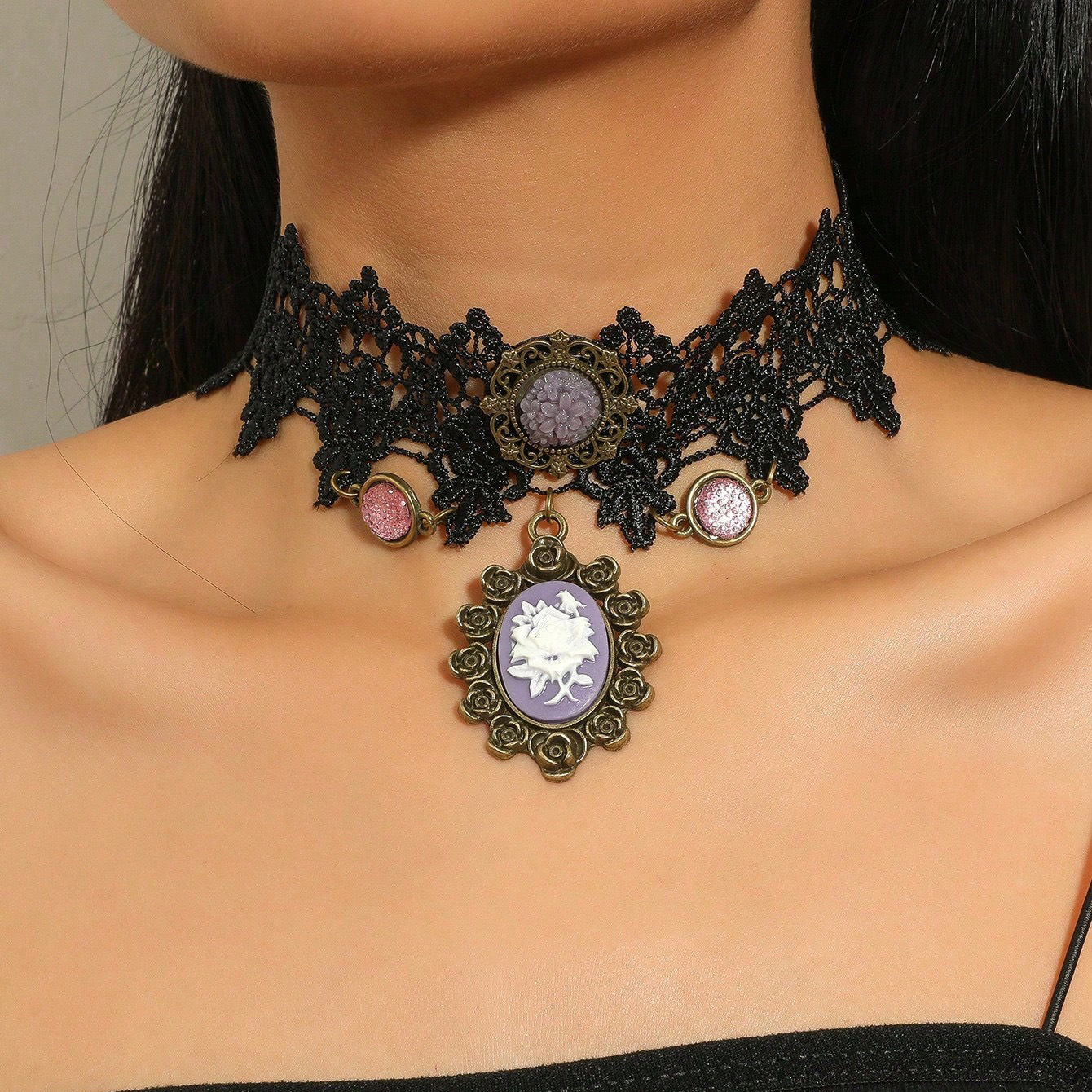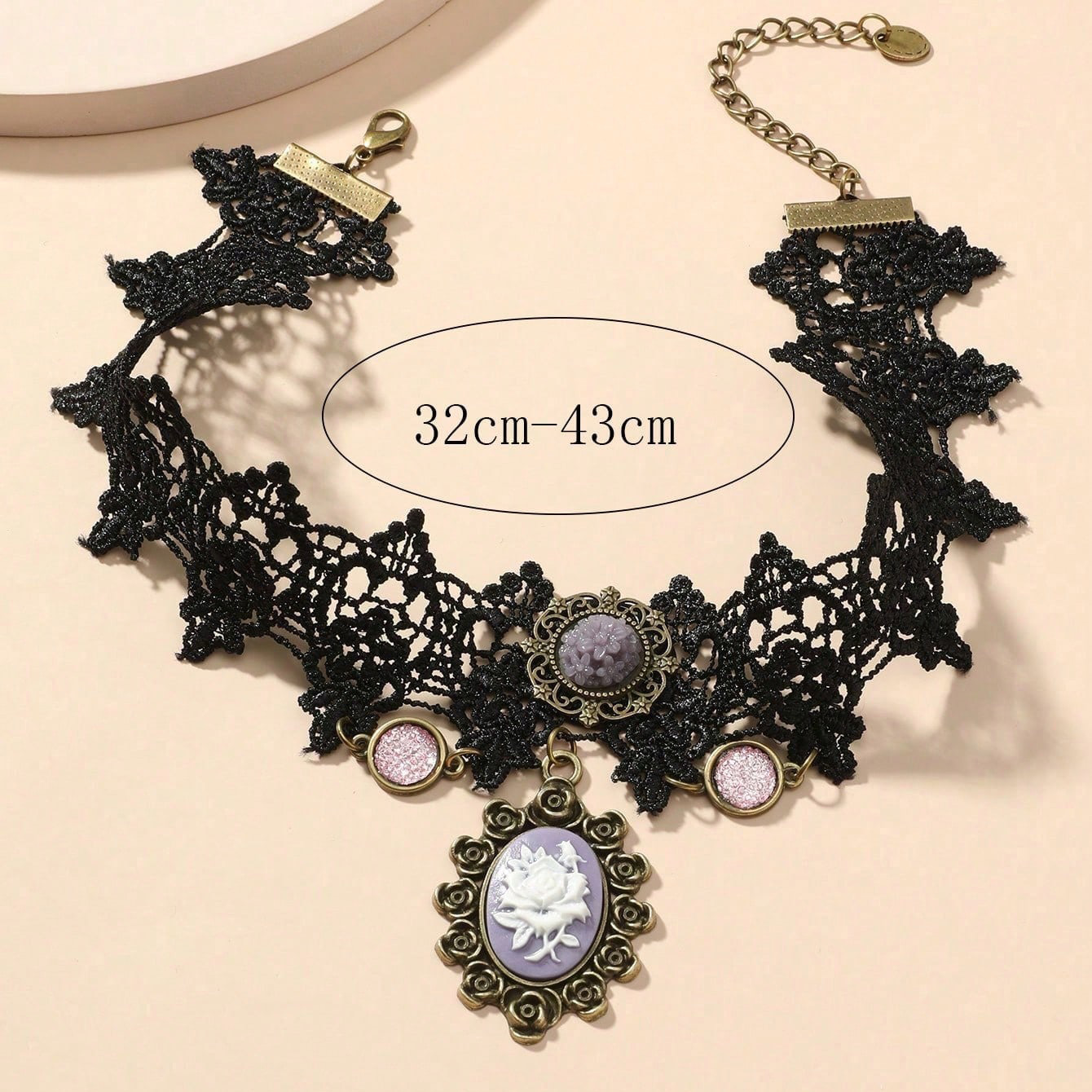2024 cross-border hot sale European and American new retro jewelry, women's personalized lace necklace, fashion drop shape necklace