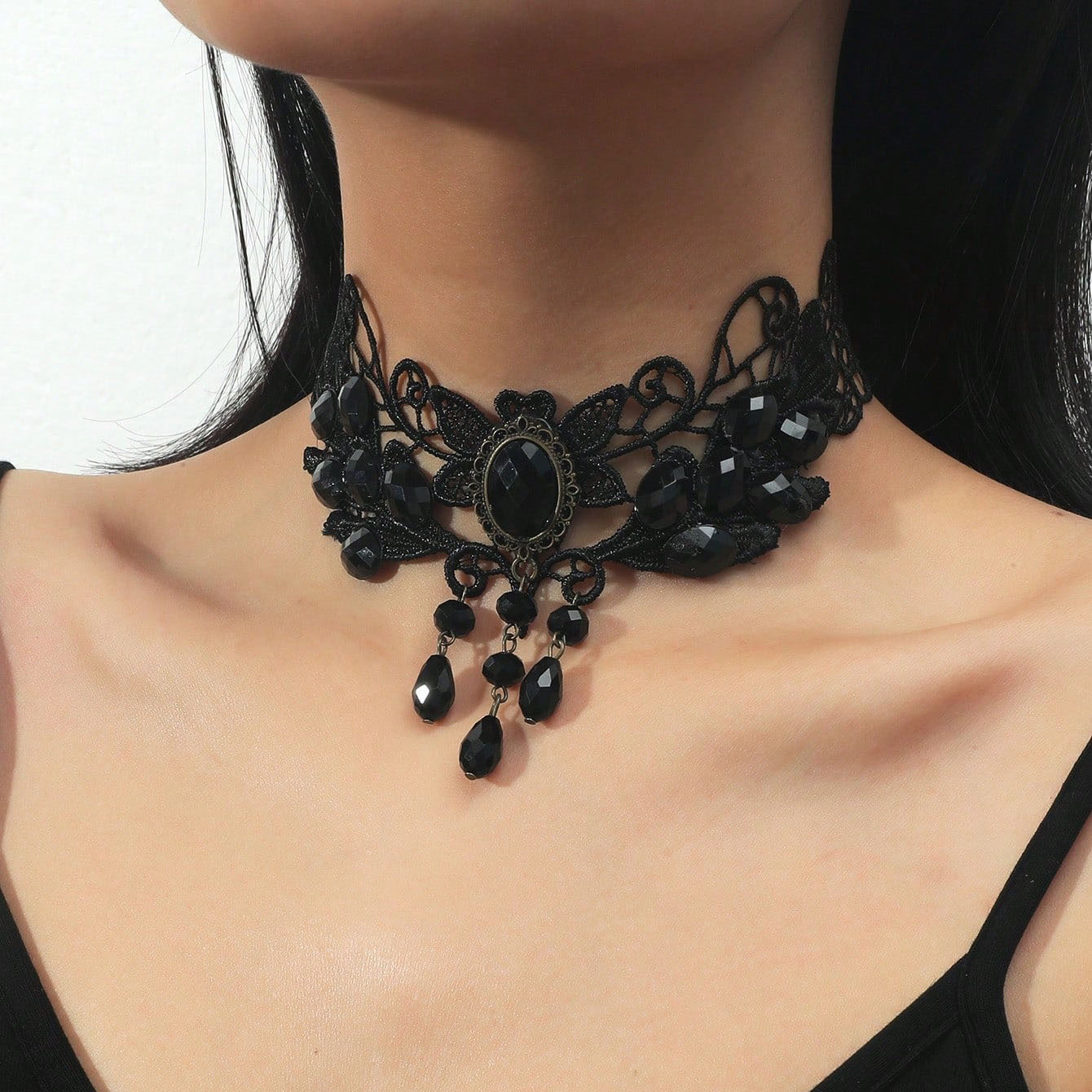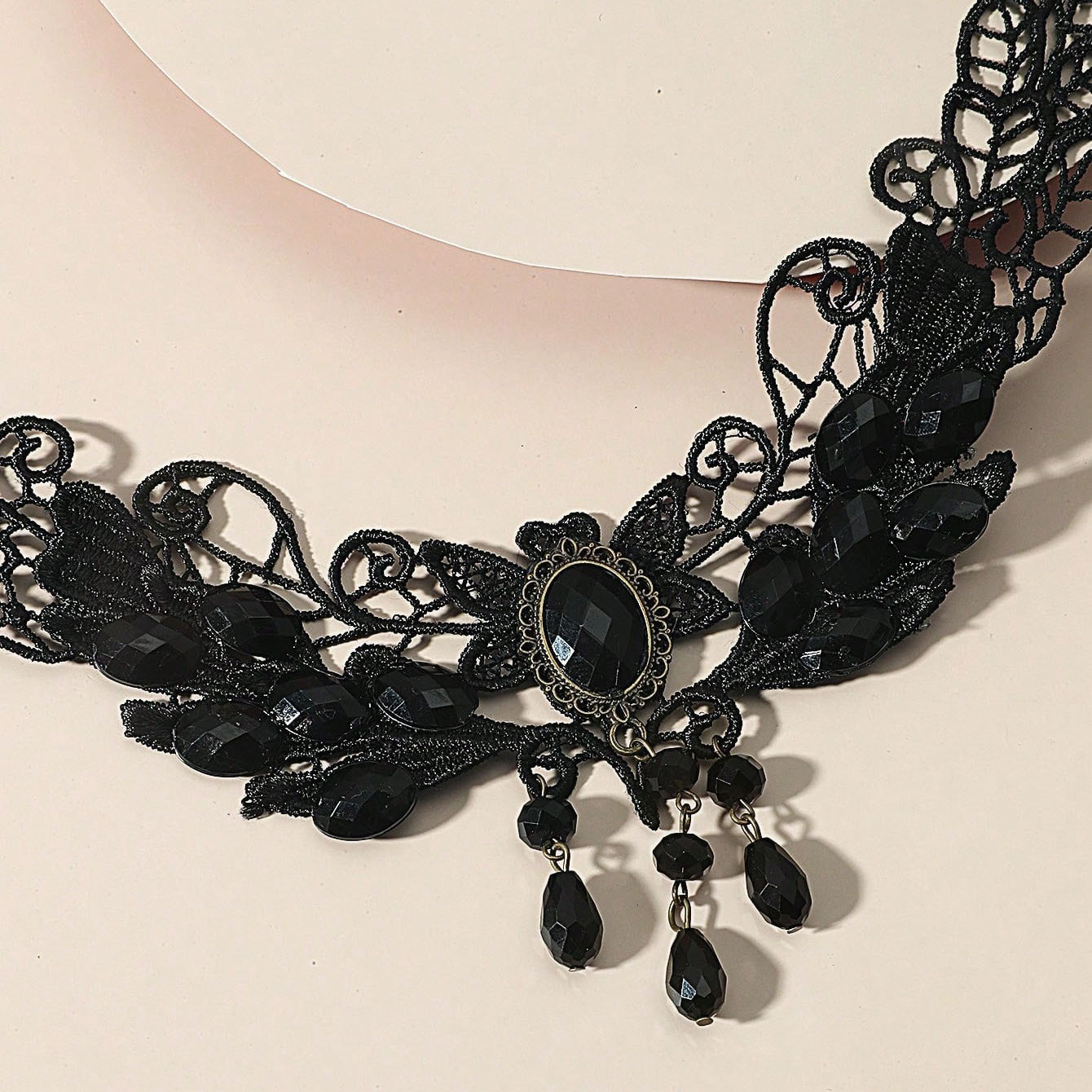 2024 cross-border jewelry, European and American new vintage women's large collar lace necklace, fashion drop shape necklace