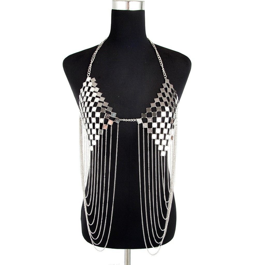2024 European and American cross-border hot chest chains, women's jewelry, alloy iron bras, metal tassels, body chains