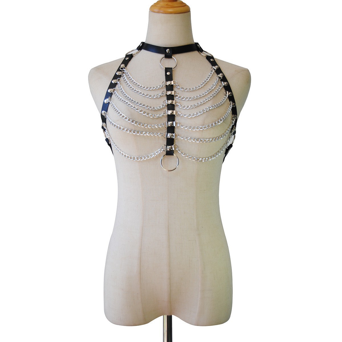 2024 European and American cross-border new hot sale new sexy exaggerated chest chain alloy chain multi-layer tassel body chain