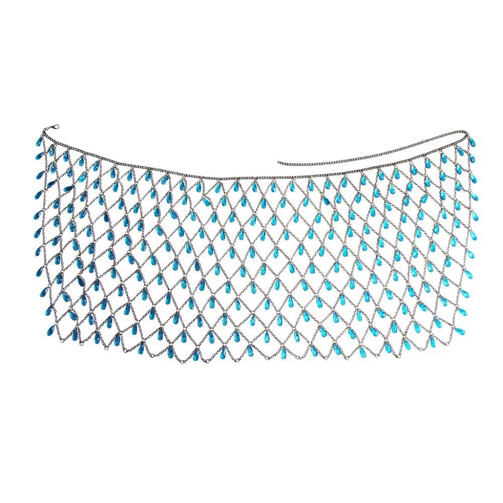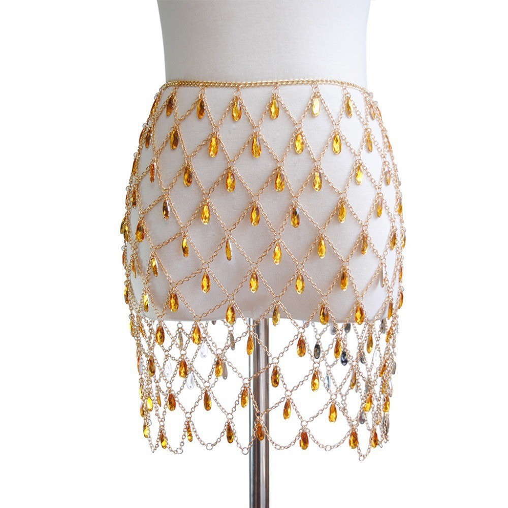 2024 European and American cross-border new hot selling fashion water drops sexy body chain hollow gemstone pendant skirt waist chain