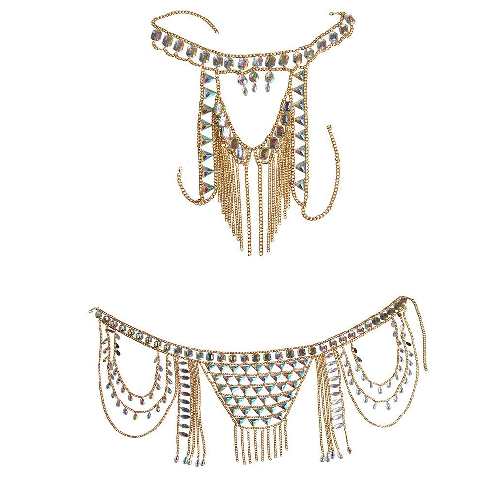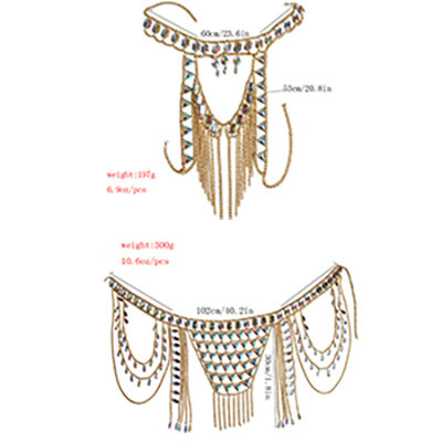 2024 European and American cross-border new sexy nightclub body chain fashion halterneck suit women's multi-layer splicing retro waist chain
