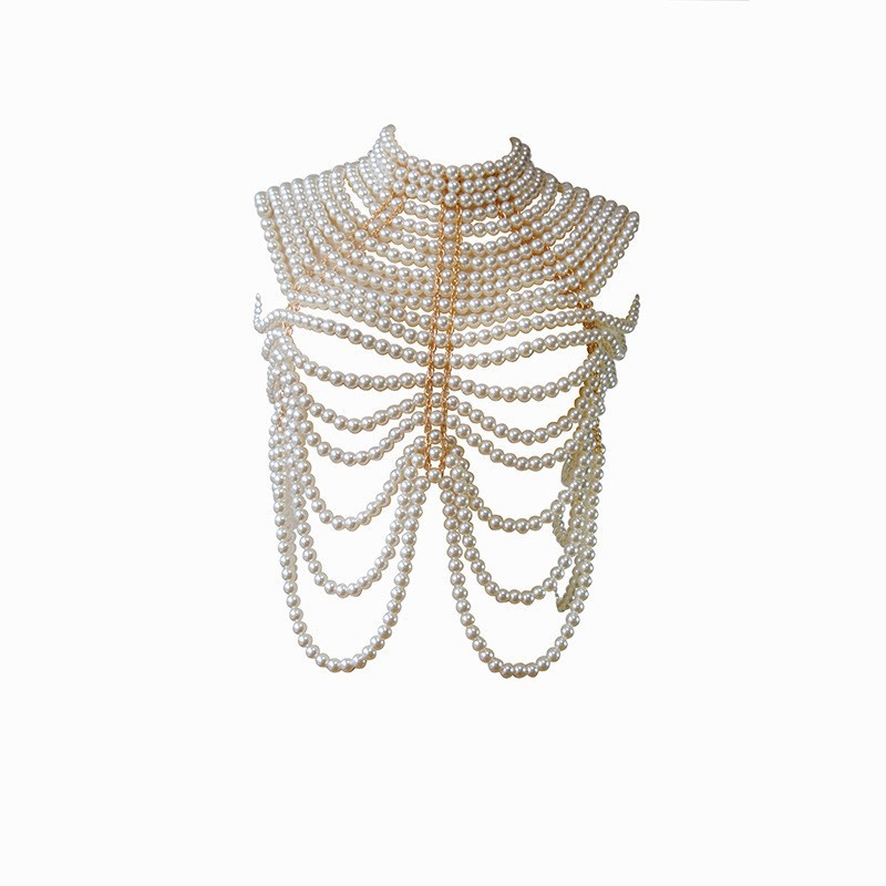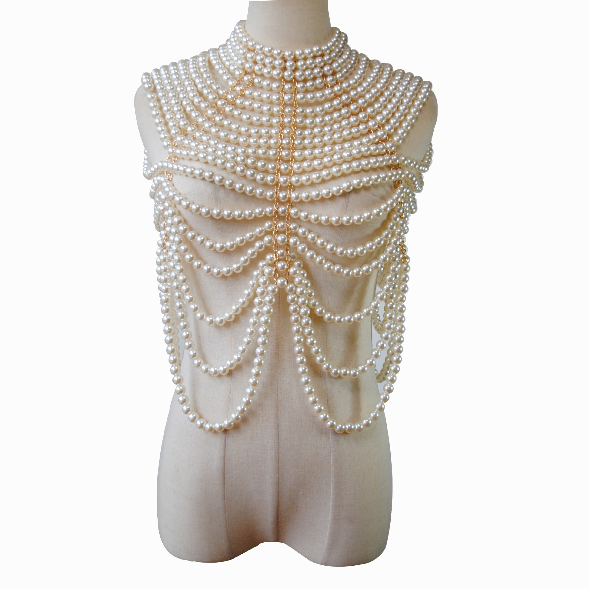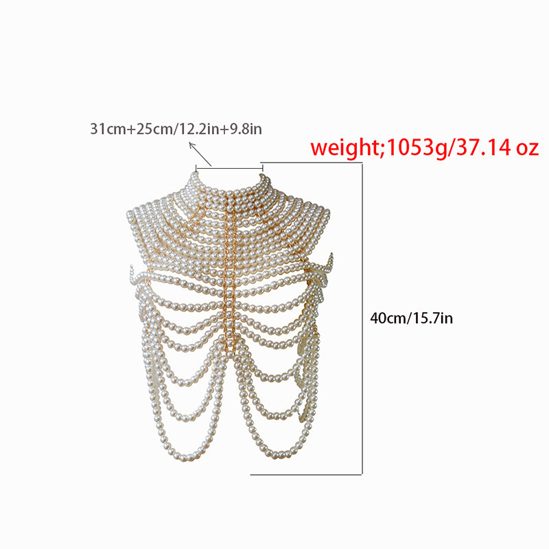 2024 European and American cross-border new summer multi-layer pearl necklace chest trim sweater chain double-layer shoulder chain pearl body chain