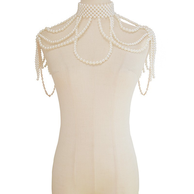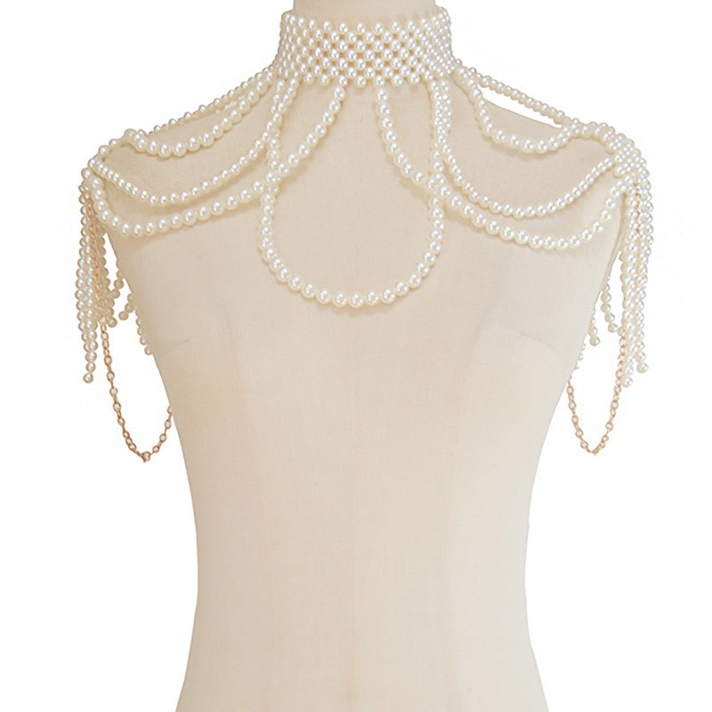 2024 European and American cross-border new summer necklace fashion chest bracelet bridal dress tassel multi-layer pearl body chain
