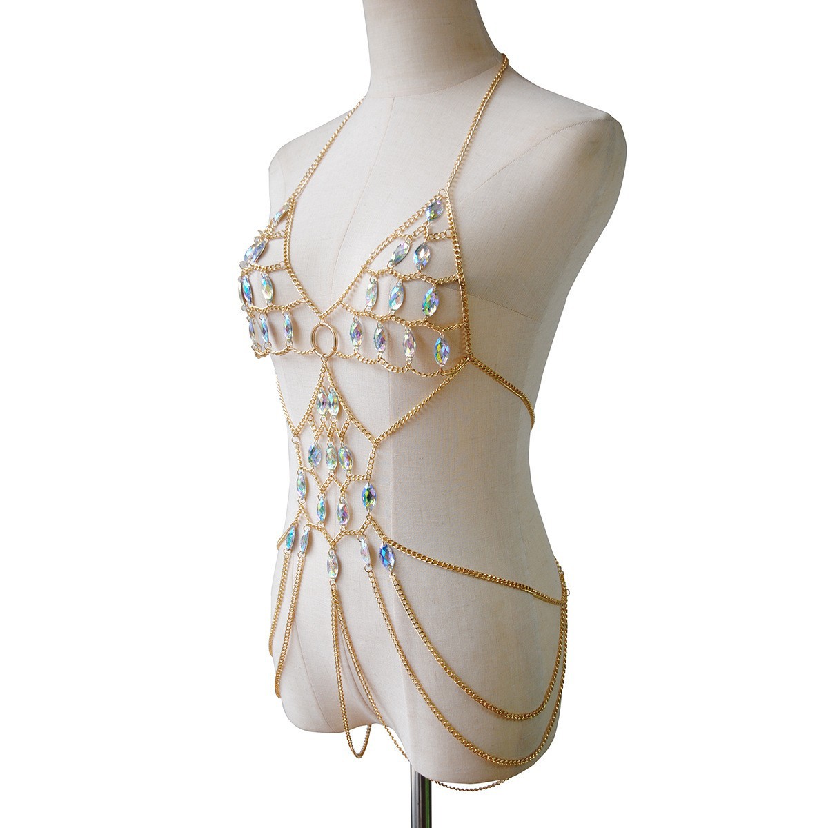 2024 New European and American Cross-border Chest Bracelet Accessories Sexy Fashion Hollow Acrylic Multi-layer Glow Body Chain