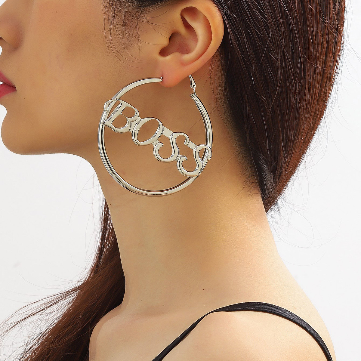 2024 new European and American cross-border hot selling personality temperament letter big circle exaggerated retro earring temperament