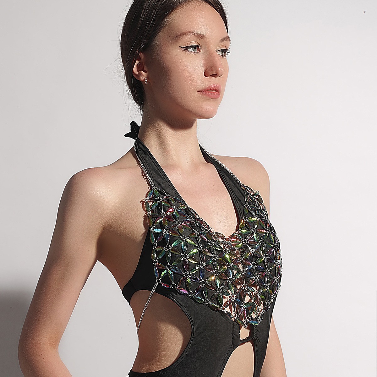 2024 new European and American cross-border jewelry, sexy acrylic nightclub, fashionable color stitching, wrap chest chest chain, body chain