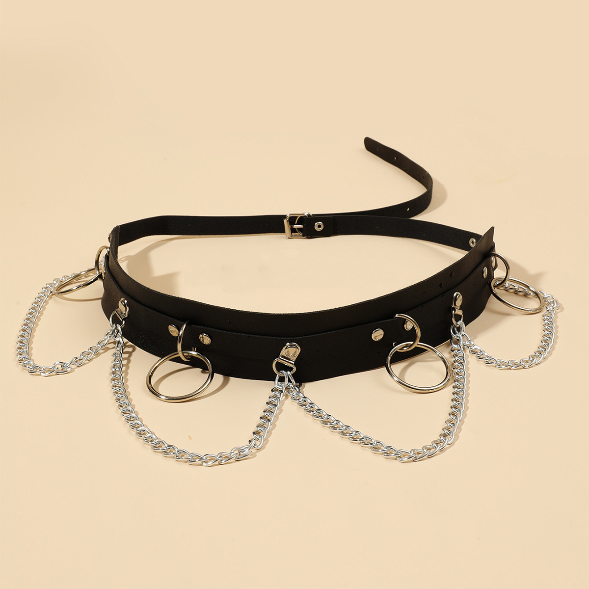 2024 New European and American Cross-border Jewelry, Sexy Punk Hip-hop Waist Chain, Personality Exaggerated, Leather Belt Body Chain