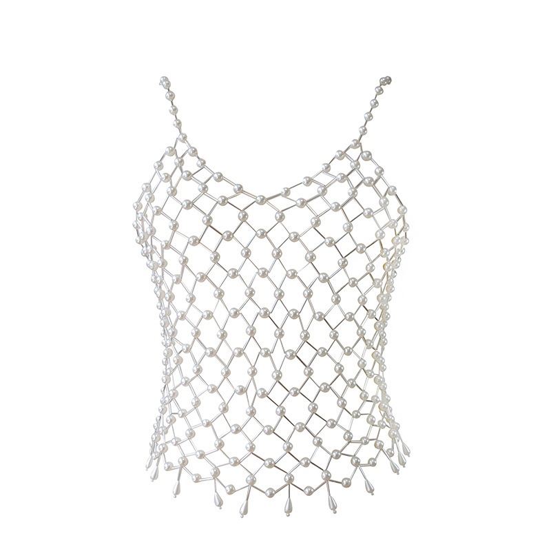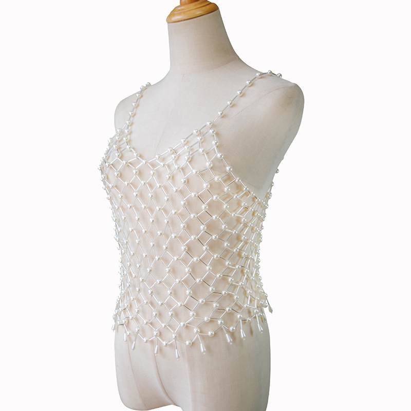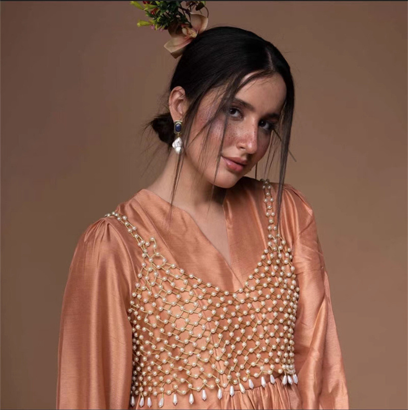 2024 New European and American Cross-border Jewelry Summer Fashion Handwoven Pearl Suspenders Sexy Chest Bracelet Body Chain