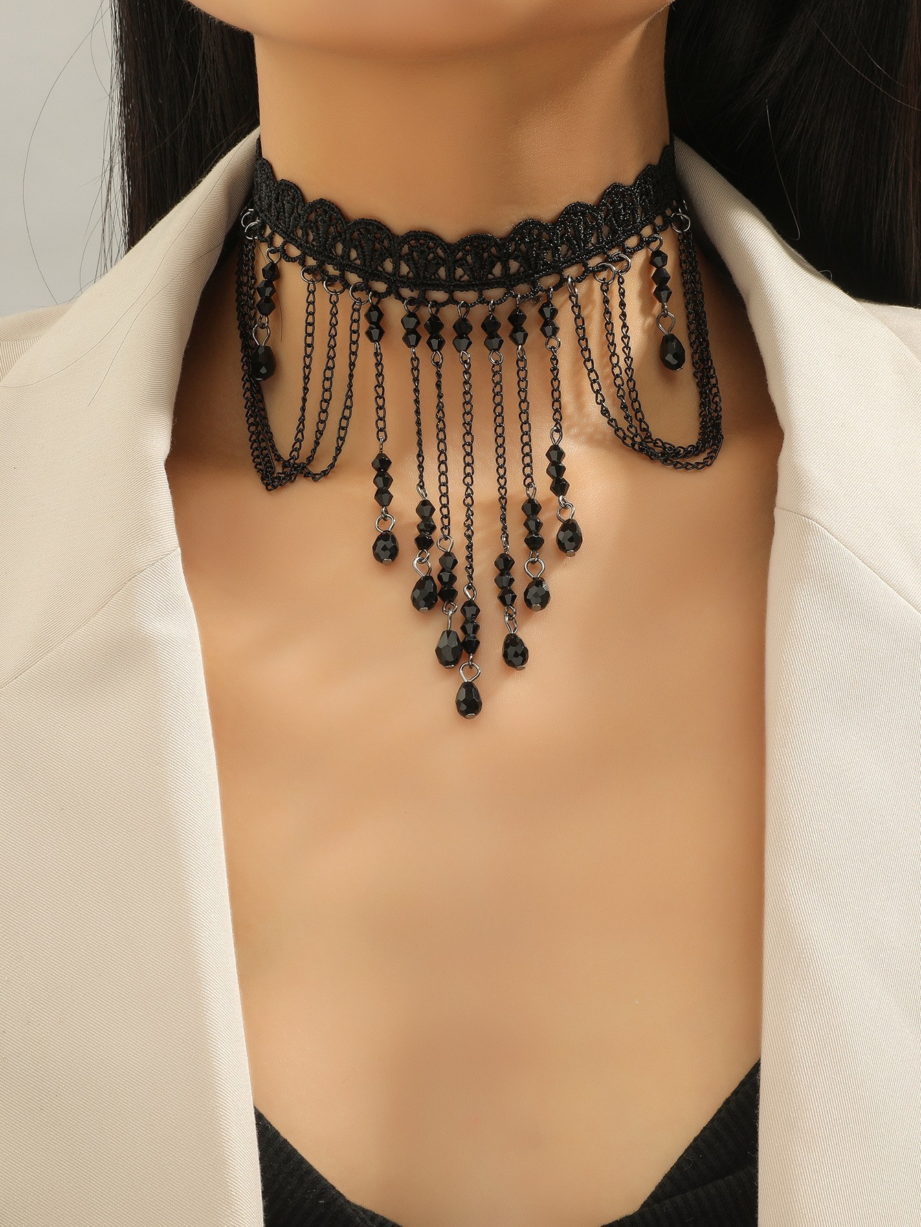 2024 new European and American hot sale clavicle chain fashion praise necklace lace necklace black lace handmade jewelry necklace