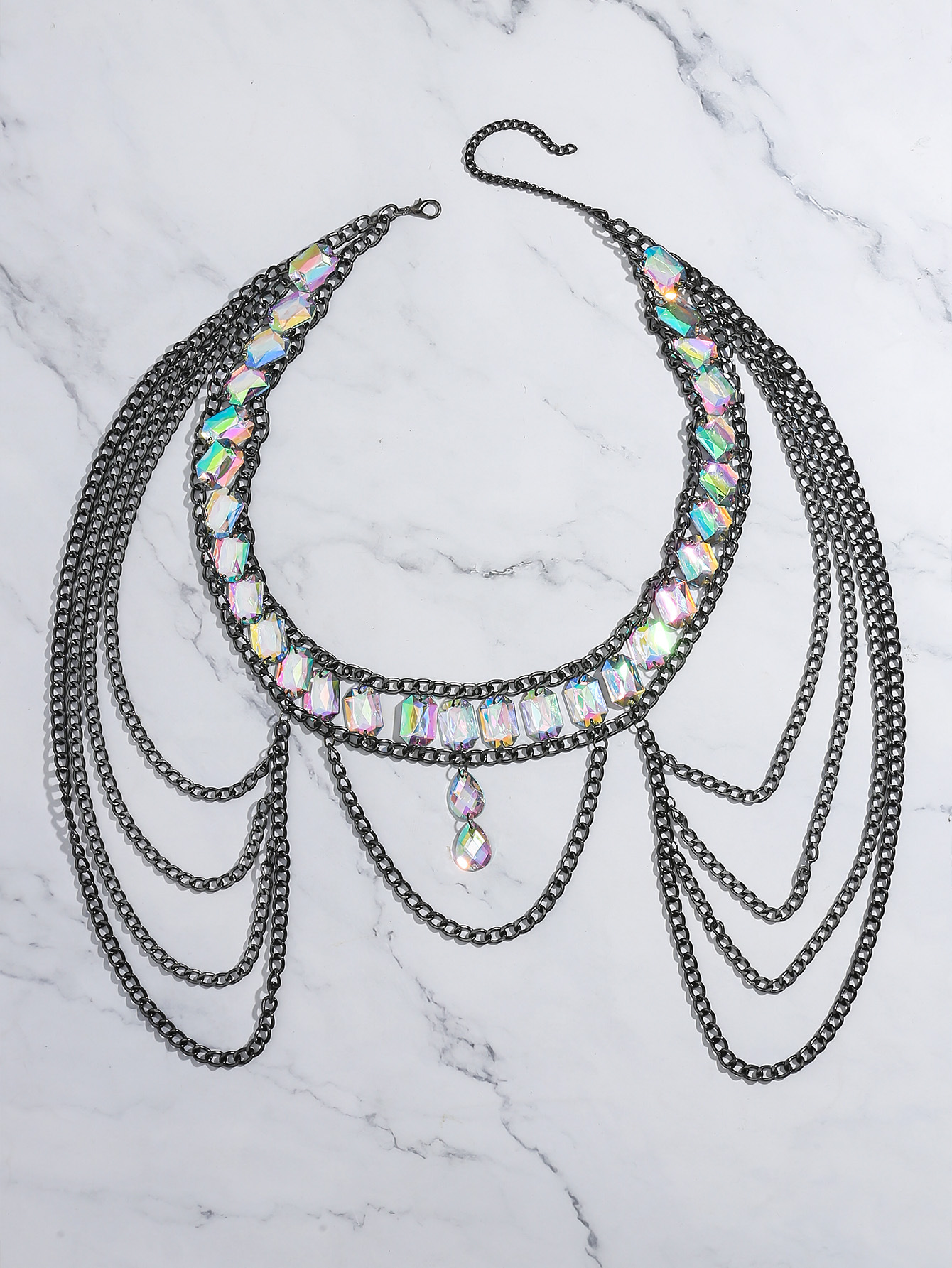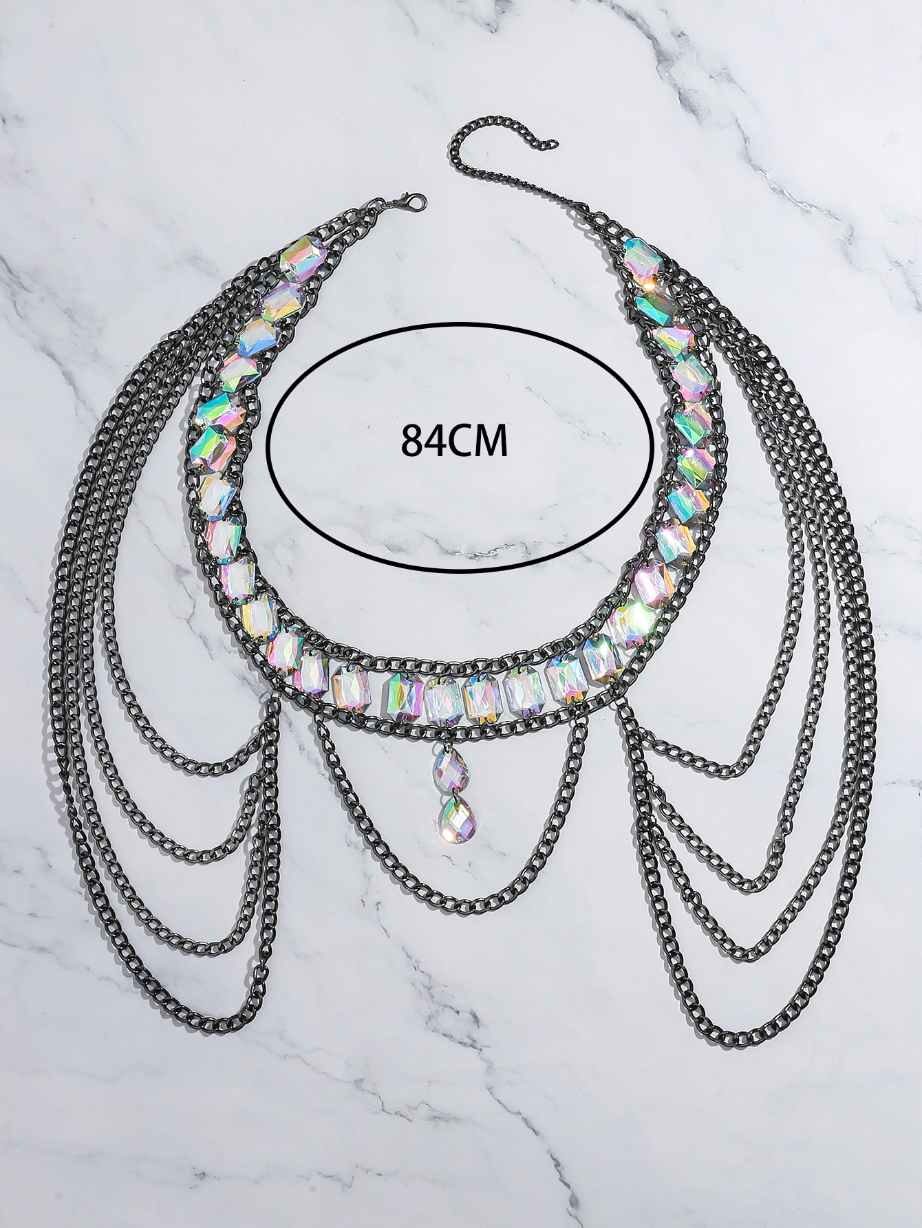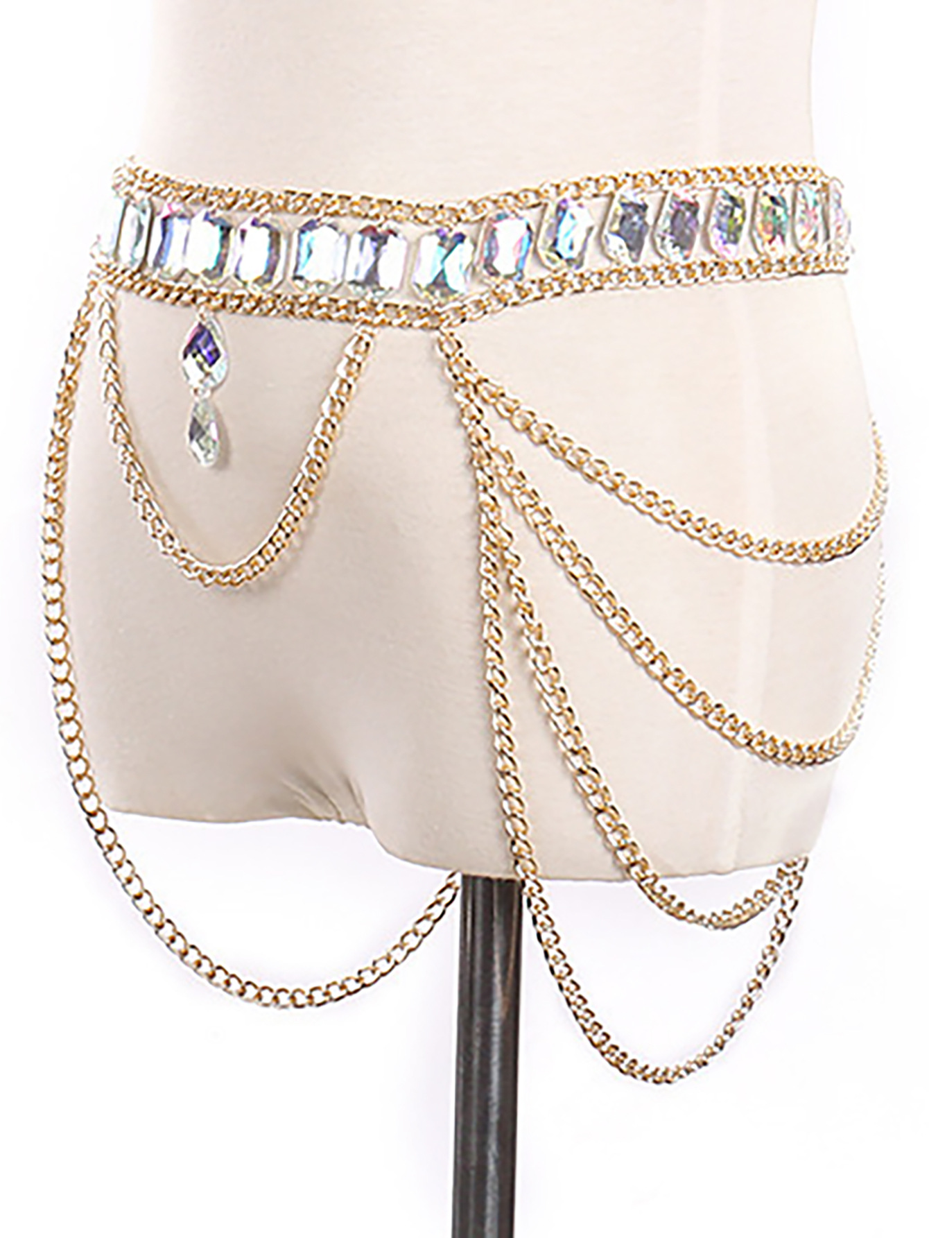 2024 Spring New Products European and American Cross-border Sexy Simple Fashion Acrylic Multi-layer Alloy Chain Waist Chain Body Chain