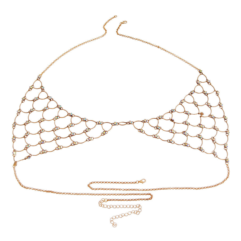 2024 summer European and American cross-border new jewelry alloy chain rhinestone simple chest chain sexy bra chain body chain