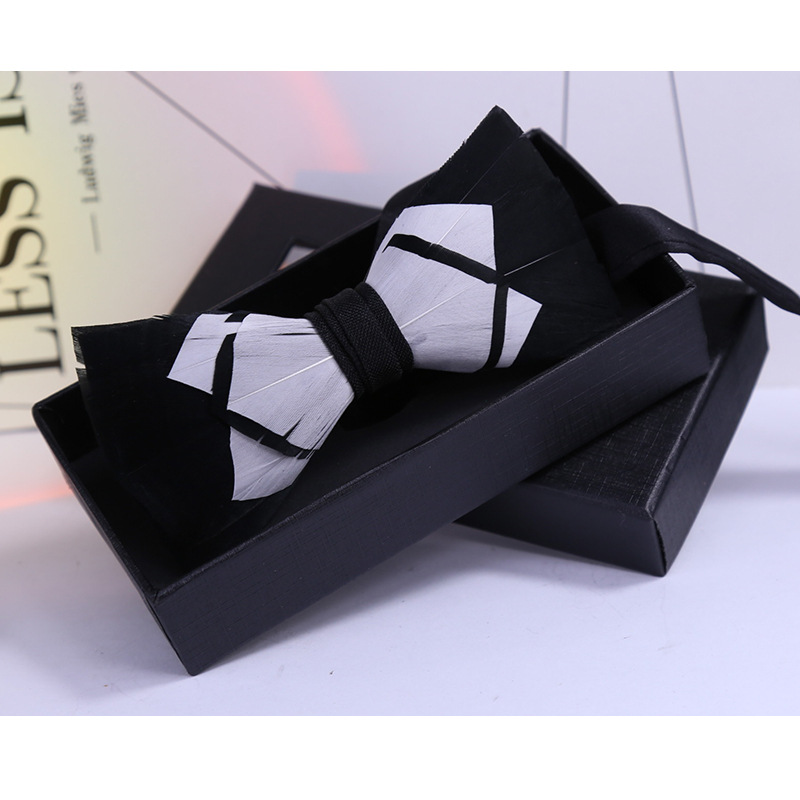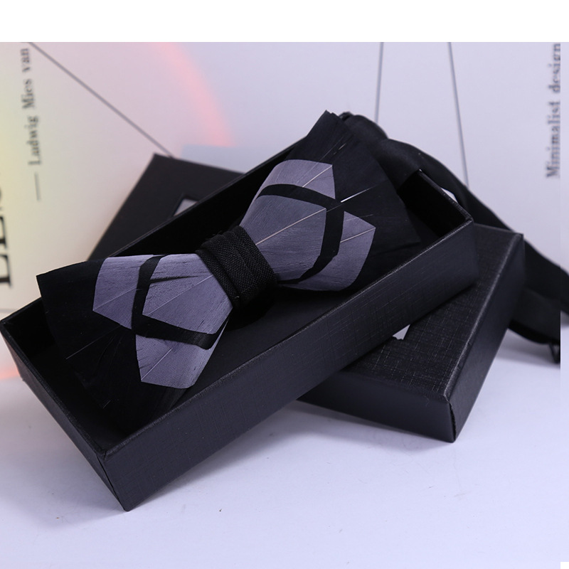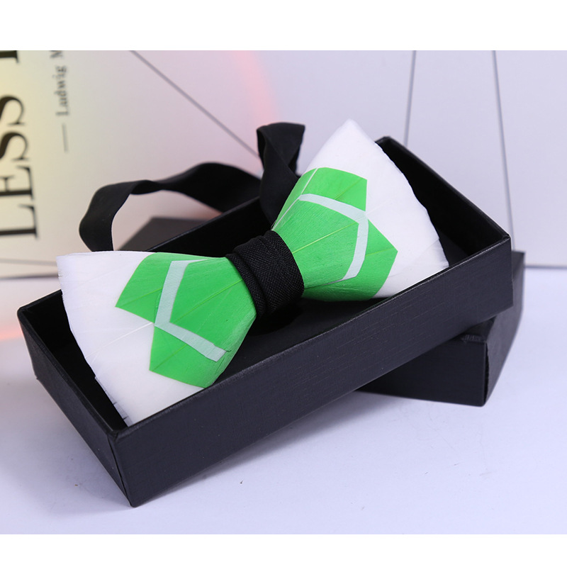 240 Dark Green Geometric Feather Men's Bow Tie Business Wedding Party Host Shirt Men's Bow
