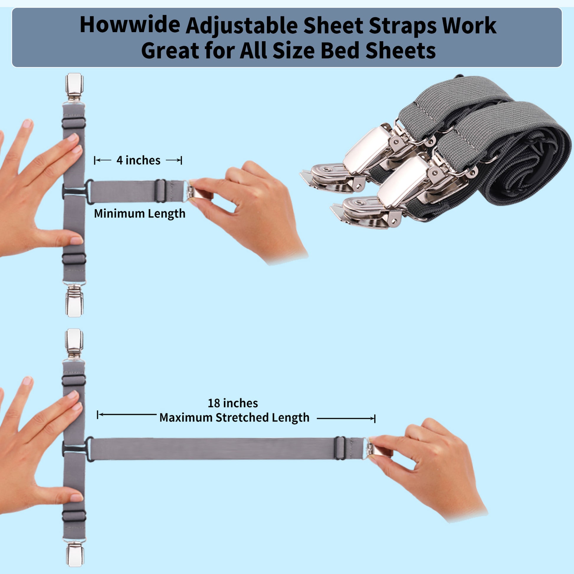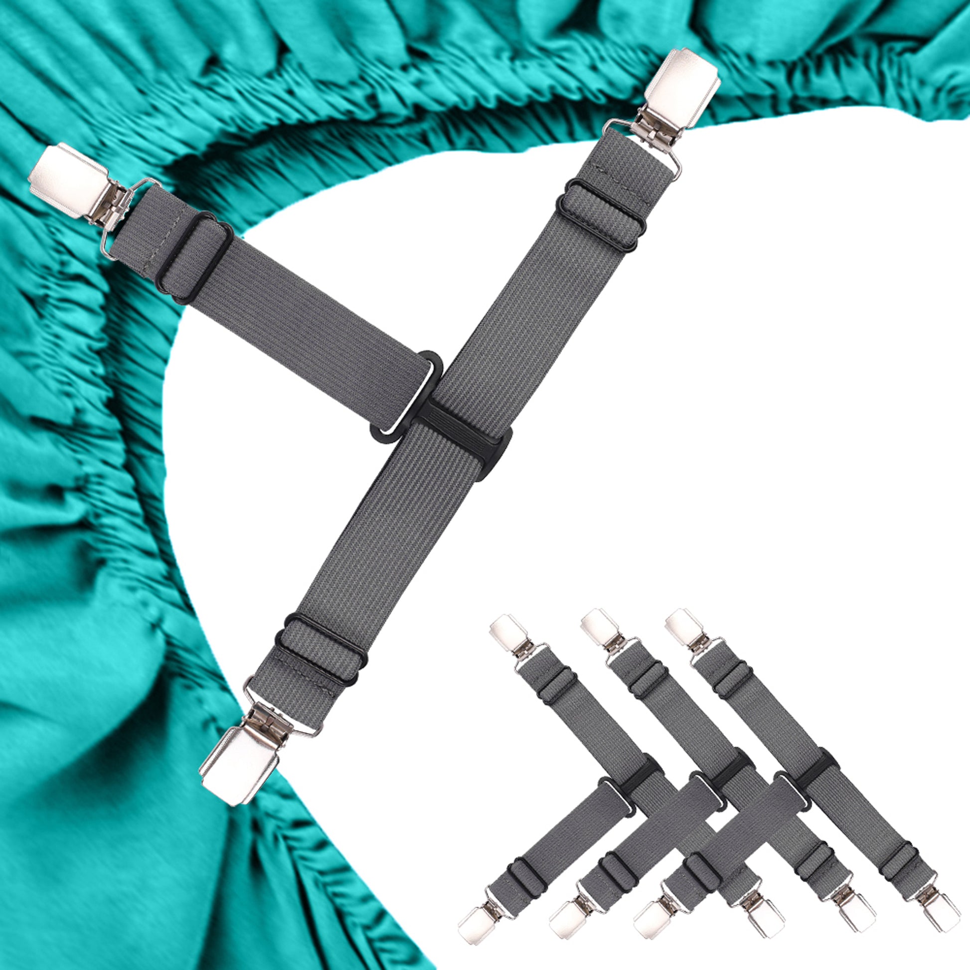 Howwide Bed Sheet Straps Fitted Sheet Holders for Corners 4 Pieces Grey