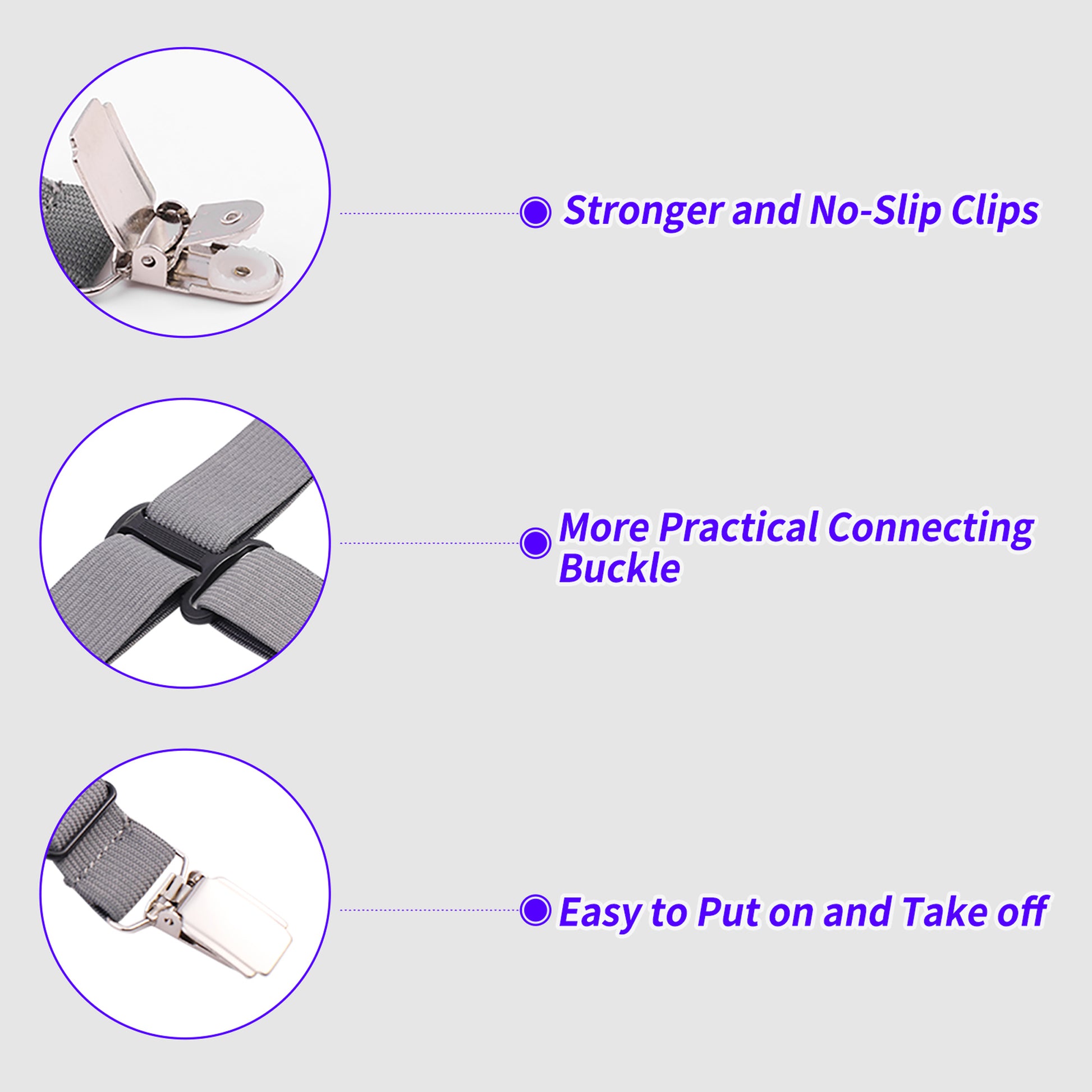 4PCS Bed Sheet Straps with Clips Sheet Holders for Corners Suspenders Sheet Fasteners, Enjoy Happy Life and Comfortable Sleeping Experience!!